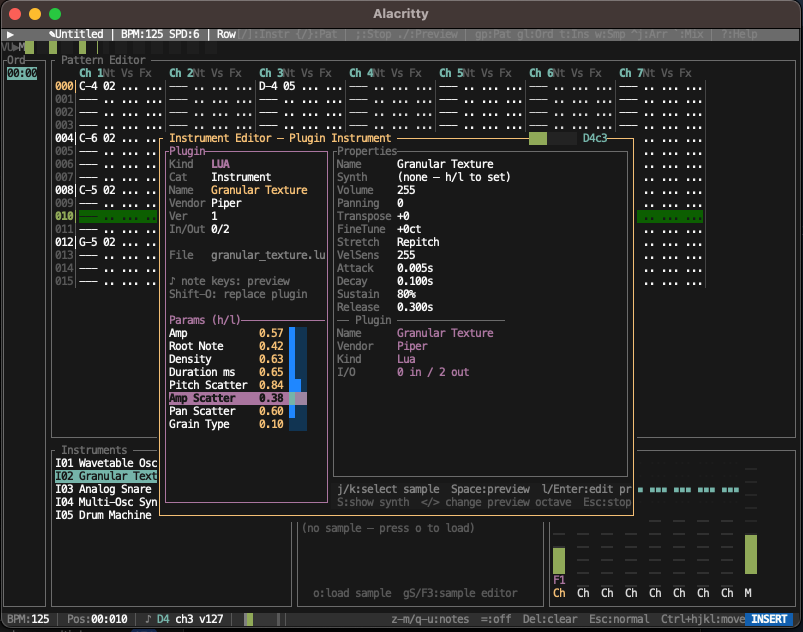 This is a text mode tracker written in rust and loosely based around the idea of a modular modern tracker using a ui based on vim.